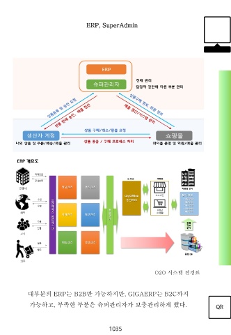 ERP, SuperAdmin O2O 시스템 전경표 대부분의 ERP는 B2B만 가능하지만, GIGAERP는 B2C까지 가능하고, 부족한 부분은 슈퍼관리자가 보충관리하게 했다. QR 1035