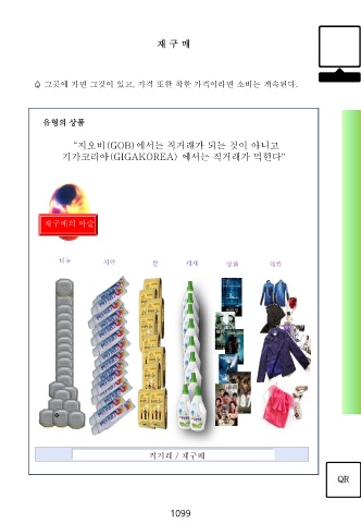 재 구 매 ♤ 그곳에 가면 그것이 있고, 가격 또한 착한 가격이라면 소비는 계속된다. 유형의 상품 “지오비(GOB)에서는 직거래가 되는 것이 아니고 기가코리아(GIGAKOREA) 에서는 직거래가 먹힌다" 재구매의 마술 비누 치약 쌀 세제 영화 의류 ❖ ❖ 직거래 / 재구매 QR 1099