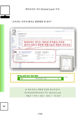 하이브리드 카드(Hybrid Card) 수익 “소비자는 아무리 좋아도 불편하면 안 쓴다" 하이브리드카드 ♤ 세계 최초로 개발에 성공한 권오석(성)의 지오비(GOB)하이브리드 카드 (Hybrid Card) 적립금 + 이익 + 권리 + 편리 = “다 있네” QR 1100