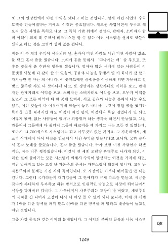 그중 가장 중요한 것은 이익의 분배입니다. 그 이익의 분배인 공유와 나눔 시스템