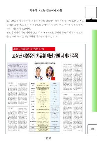 언론사가 보는 권오석과 마윈 2015년도에 중국의 마윈 회장과 한국의 권오석이 하루속히 만나서 고장 난 자본 주의를 고쳐주었으면 하는 희망으로 공학박사 한 분이 신문 전면을 할애하여 기 사로 다룬 적이 있습니다. 권오석 회장의 기술 시연을 보고 나서 세계적으로 유명한 중국의 마윈과 권오석 을 만나게 하고 싶다는 강력한 의지를 비춘 것입니다. QR 1331