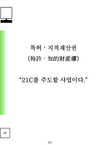 특허 〮 지적재산권 (特許 〮 知的財産權) “21C를 주도할 사업이다.” QR 822