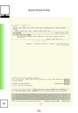 법인등기부등본(무액면) QR 856