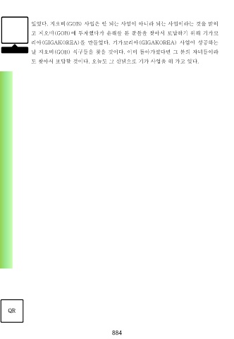 있었다. 지오비(GOB) 사업은 안 되는 사업이 아니라 되는 사업이라는 것을 밝히 고 지오비(GOB)에 투자했다가 손해를 본 분들을 찾아서 보답하기 위해 기가코 리아(GIGAKOREA)를 만들었다. 기가코리아(GIGAKOREA) 사업이 성공하는 날 지오비(GOB) 식구들을 찾을 것이다. 이미 돌아가셨다면 그 분의 자녀들이라 도 찾아서 보답할 것이다. 오늘도 그 신념으로 기가 사업을 해 가고 있다. QR 884