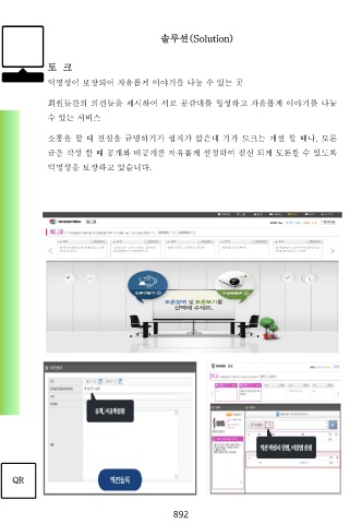 솔루션(Solution) 토 크 익명성이 보장되어 자유롭게 이야기를 나눌 수 있는 곳 회원들간의 의견들을 제시하여 서로 공감대를 형성하고 자유롭게 이야기를 나눌 수 있는 서비스 소통을 할 때 진실을 규명하기가 쉽지가 않은데 기가 토크는 개설 할 때나, 토론 글을 작성 할 때 공개와 비공개를 자유롭게 설정하여 진실 되게 토론할 수 있도록 익명성을 보장하고 있습니다. QR 892