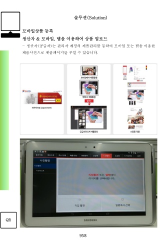 솔루션(Solution) 모바일상품 등록 생산자 & 모바일, 탭을 이용하여 상품 업로드 - 생산자(공급자)는 관리자 계정의 제품관리를 통하여 모바일 또는 탭을 이용한 제품사진으로 제품페이지를 꾸밀 수 있습니다. QR 958