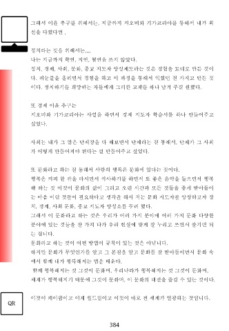 또 문화라고 하는 걸 통해서 사람의 행복은 문화에 있다는 것이다.