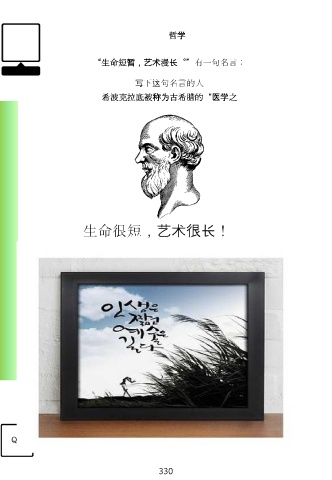 哲学 “生命短暂,艺术漫长。”有一句名言: 写下这句名言的人 希波克拉底被称为古希腊的“医学之 生命很短,艺术很长! QR 330