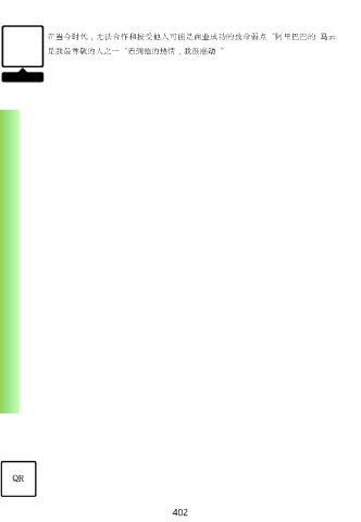 在当今时代,无法合作和接受他人可能是商业成功的致命弱点。阿里巴巴的 马云 是我最尊敬的人之一。看到他的热情,我很感动。 QR 402