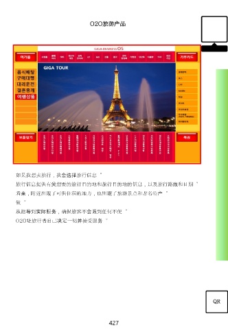O2O旅游产品 如果我想去旅行,我会选择旅行信息。 旅行信息提供有关想要的旅行目的地和旅行目的地的信息,以及旅行路线和日期。 看来,附近出现了可供住宿的地方,也出现了旅游景点和著名特产。 做。 从指导到实际服务,确保旅客不会遇到任何不便。 O2O让旅行者自己决定一切并接受服务。 QR 427
