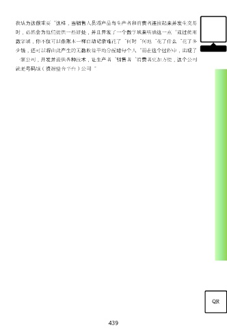 我认为这很重要。这样,当销售人员将产品与生产者和消费者连接起来并发生交易 时,必然会为他们提供一些好处,并且开发了一个数字域来明确这一点。通过使用 数字域,你不仅可以像账本一样自动记录谁花了、何时、何地、花了什么、花了多 少钱,还可以将由此产生的无数收益平均分配给每个人。而在这个过程中,出现了 一家公司,开发并提供各种技术,让生产者、销售者、消费者更加方便,这个公司 就是号码域(资源整合平台)公司。 QR 439