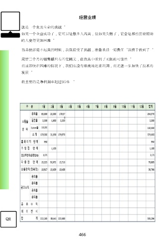 经营业绩 这是一个危及生命的挑战。 如果一个企业成功了,它可以让很多人高兴,但如果失败了,它会让那些需要帮助 的人变得更加困难。 当系统搭建不起来的时候,我就接受了挑战,准备承担一切责任。我终于做到了。 尽管三个月的销售额只有五亿韩元,但我从中看到了无限的可能性。 而且即使在困难的情况下,我们也没有单纯地追求利润,而是进一步加快了技术的 发展。 最重要的是净利润率超过95% 。 QR 466