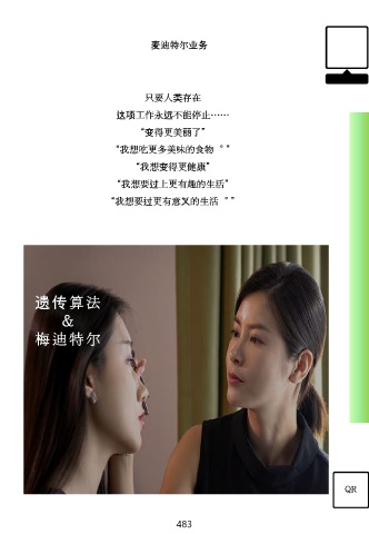 麦迪特尔业务 只要人类存在 这项工作永远不能停止…… “变得更美丽了” “我想吃更多美味的食物。 ” “我想变得更健康” “我想要过上更有趣的生活” “我想要过更有意义的生活。 ” 遗 传 算 法 & 梅 迪 特 尔 QR 483