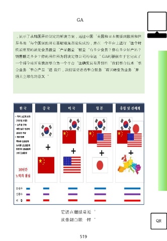 GA ,展示了从韩国开始制定的解决方案,通过中国、美国和日本传播到欧洲和世 界各地。每个国家的所有基础设施都是集成的,并在一个平台上运行。这个时 候最重要的就是会员数量、产品数量、销量。有多少会员?你有多少好产品? 销售额是多少?你的所作所为将决定你公司的命运。 GA的骄傲在于它完成了 一个将全球所有资源整合为一个平台。这确实具有开创性。我们整合技术、整 合业务、整合产品。还 最后,我们需要看看整合服务、将其转变为业务、并 将其全球化的意义。 它还在继续蔓延。 就像翻白眼一样。 QR 519