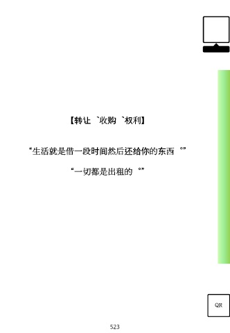 【转让、收购、权利】 “生活就是借一段时间然后还给你的东西。” “一切都是出租的。” QR 523