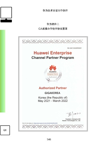 华为技术认证合作伙伴 华为硬件上 GA直播合作伙伴协议签署 QR 546