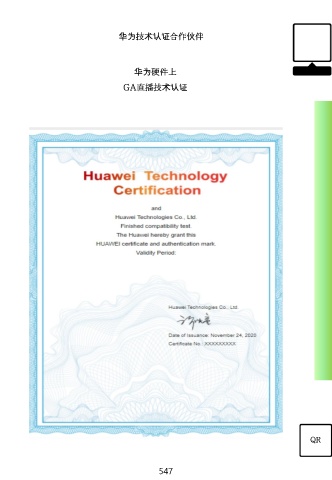 华为技术认证合作伙伴 华为硬件上 GA直播技术认证 QR 547