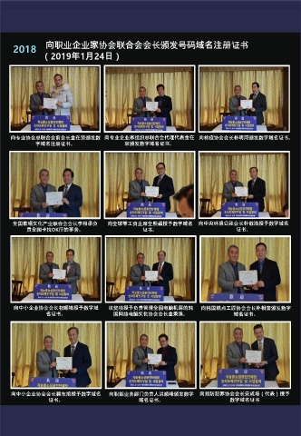 2018 向职业企业家协会联合会会长颁发号码域名注册证书