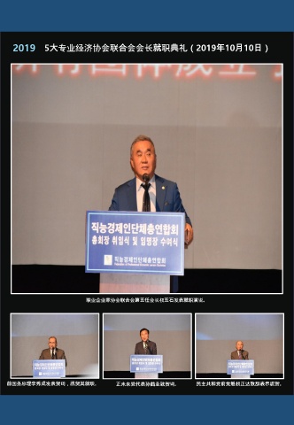 2019 5大专业经济协会联合会会长就职典礼(2019年10月10日) 职业企业家协会联合会第五任会长权五石发表就职演说。 前国务总理李秀成发表贺词,祝贺其就职。 正未来党代表孙鹤圭致贺词。 民主共和党前党魁权正达致辞表示祝贺。