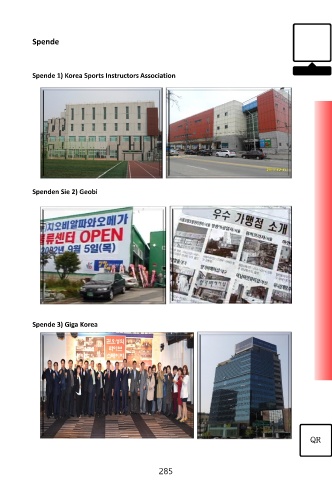 Spende Spende 1) Korea Sports Instructors Association Spenden Sie 2) Geobi Spende 3) Giga Korea QR 285