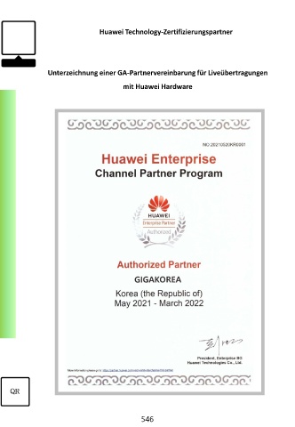 Huawei Technology-Zertifizierungspartner Unterzeichnung einer GA-Partnervereinbarung für Liveübertragungen mit Huawei Hardware QR 546