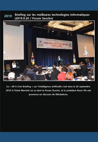 2019 à l'hôtel Marriott où se tient le Forum Seocho, et le président Kwon Oh-suk