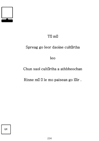 Tá mé Spreag go leor daoine cultúrtha leo Chun saol cultúrtha a athbheochan Rinne mé é le mo paisean go léir . QR 224