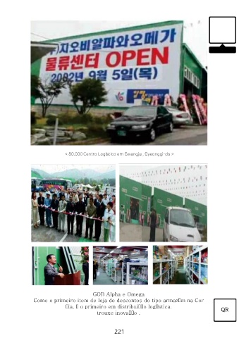 < 80.000 Centro Logístico em Gwangju , Gyeonggi-do > GOB Alpha e Omega Como o primeiro item de loja de descontos do tipo armazém na Cor éia, é o primeiro em distribuição logística. QR trouxe inovação . 221