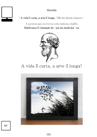 filosofia ' A vida é curta, a arte é longa .' Há um ditado famoso : A pessoa que escreveu esta famosa citação Hipãcrates é chamado de ' pai da medicina ' na A vida é curta, a arte é longa! QR 330