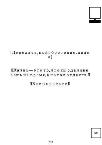 [ Передача , приобретение , прав о ] « Жизнь —это то, что ты одалжив аешь на время, а потом отдаешь «. « Все в прокате .« QR 523