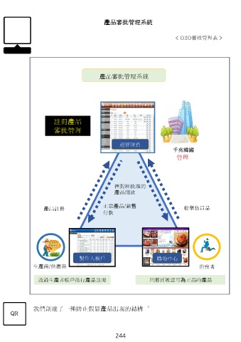 產品審批管理系統 < O2O審核管理表 > 產品審批管理系統 註冊產品 審批管理 超管理員 千兆韓國 管理 僅對經批准的 產品開放 正常產品/銷售 產品註冊 檢舉仿冒品 付款 製作人帳戶 購物中心 生產商/供應商 消費者 透過生產者帳戶進行產品註冊 只購買被認可為正品的產品 我們創建了一種防止假冒產品出現的結構。 QR 244