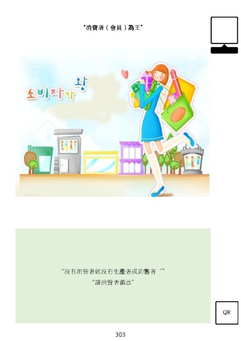 “消費者(會員)為王” “沒有消費者就沒有生產者或銷售者。” “讓消費者滿意” QR 303