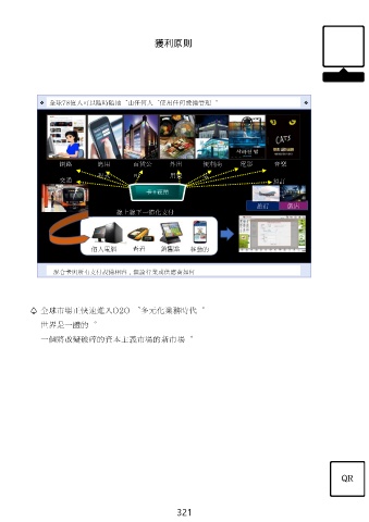 獲利原則 ❖ 全球78億人可以隨時隨地、由任何人、使用任何設備管理。 ❖ 網路 應用 百貨公 外出 便利商 電影 音樂 程式 司 用餐 店 交通 預訂 卡+硬幣 旅行 飯店 線上線下一體化支付 個人電腦 查看 銷售點 移動的 混合卡與所有支付設備相容,無論行業或供應商如何 ♤ 全球市場正快速進入O2O 、多元化業務時代。 世界是一體的。 一個將改變破碎的資本主義市場的新市場。 QR 321