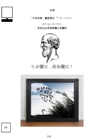 哲學 “生命短暫,藝術漫長。”有一句名言: 寫下這句名言的人 希波克拉底被稱為古希臘的 生命很短,藝術很長! QR 330