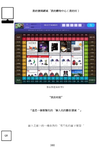我的號碼網域、我的購物中心(我的村) 離線數值域模型2 “我的村莊” 「這是一個客製化的、個人化的數位領域。 」 線上是線上的一種自然的、專門化的線下類型。 QR 380