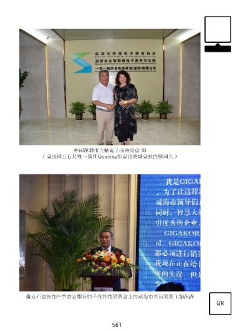 中國深圳市全精電子商務協會 與 (會長權五石是唯一擔任Quasing協會常務副會長的韓國人) 權五石會長在四季酒店舉行的千兆科技發表會上向威海市官員發表主題演講 QR 561